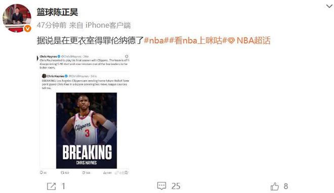 快船方面的自媒体APHoops也给出分析:保罗在更衣室里得罪了某些大牌,对此对此耿耿于怀,如今球队历史第一人被送走,只为了迎合某个可能三个月后就不在这里的人的要求。APHoops没有说出具体是哪些大牌,不妨来看看知名解说员陈正昊的说法:据说是在更衣室得罪伦纳德了。
